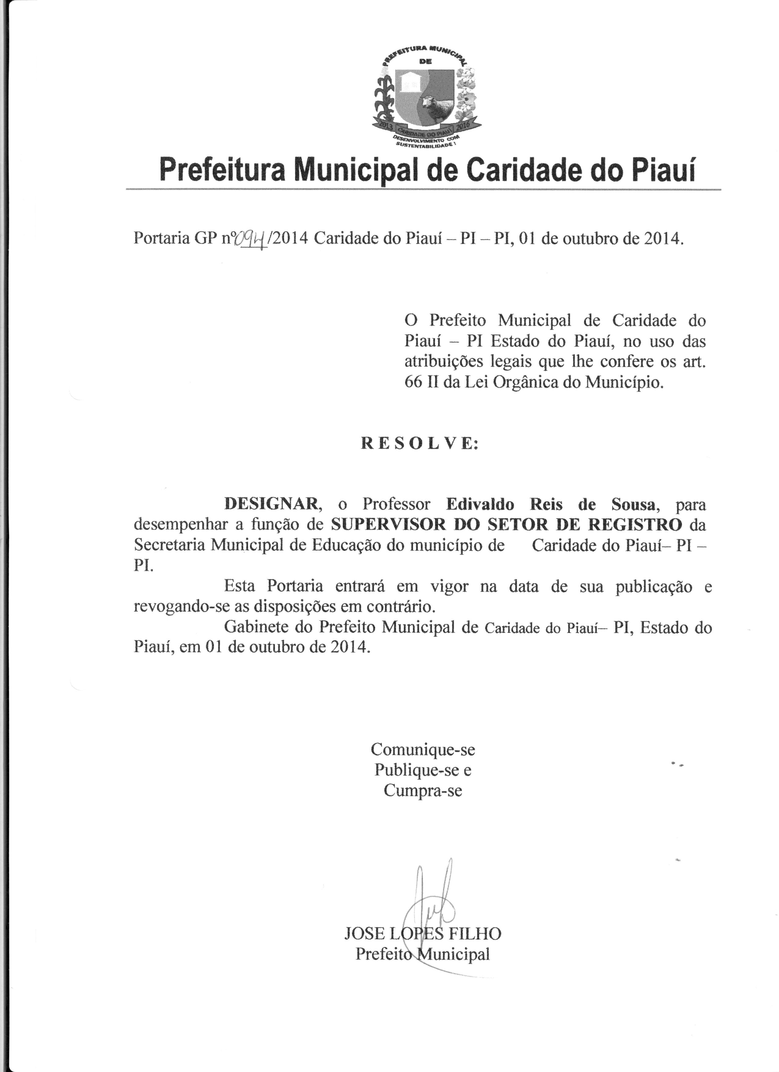 Lei publicada PORTARIA Nº 094/2014PORTARIA |
