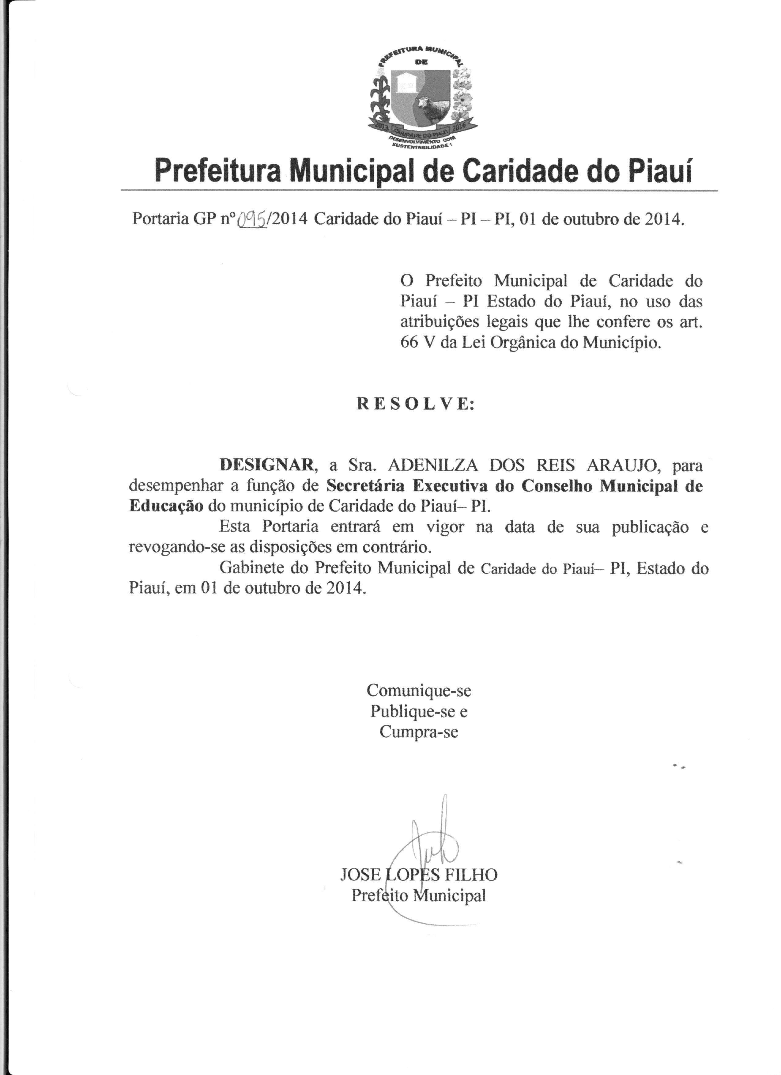 Lei publicada PORTARIA Nº 095/2014PORTARIA |