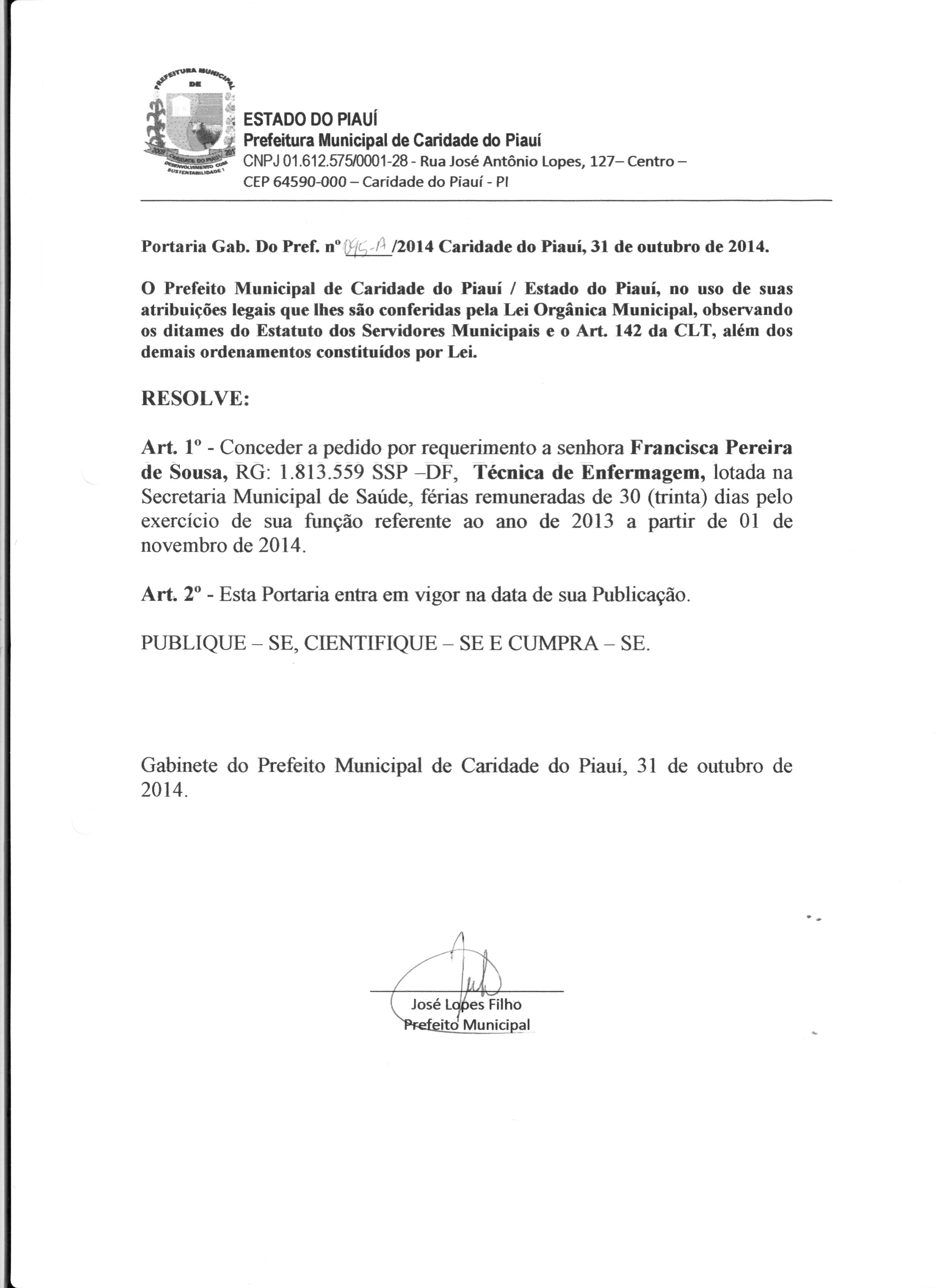 Lei publicada PORTARIA Nº 095A/2014PORTARIA |