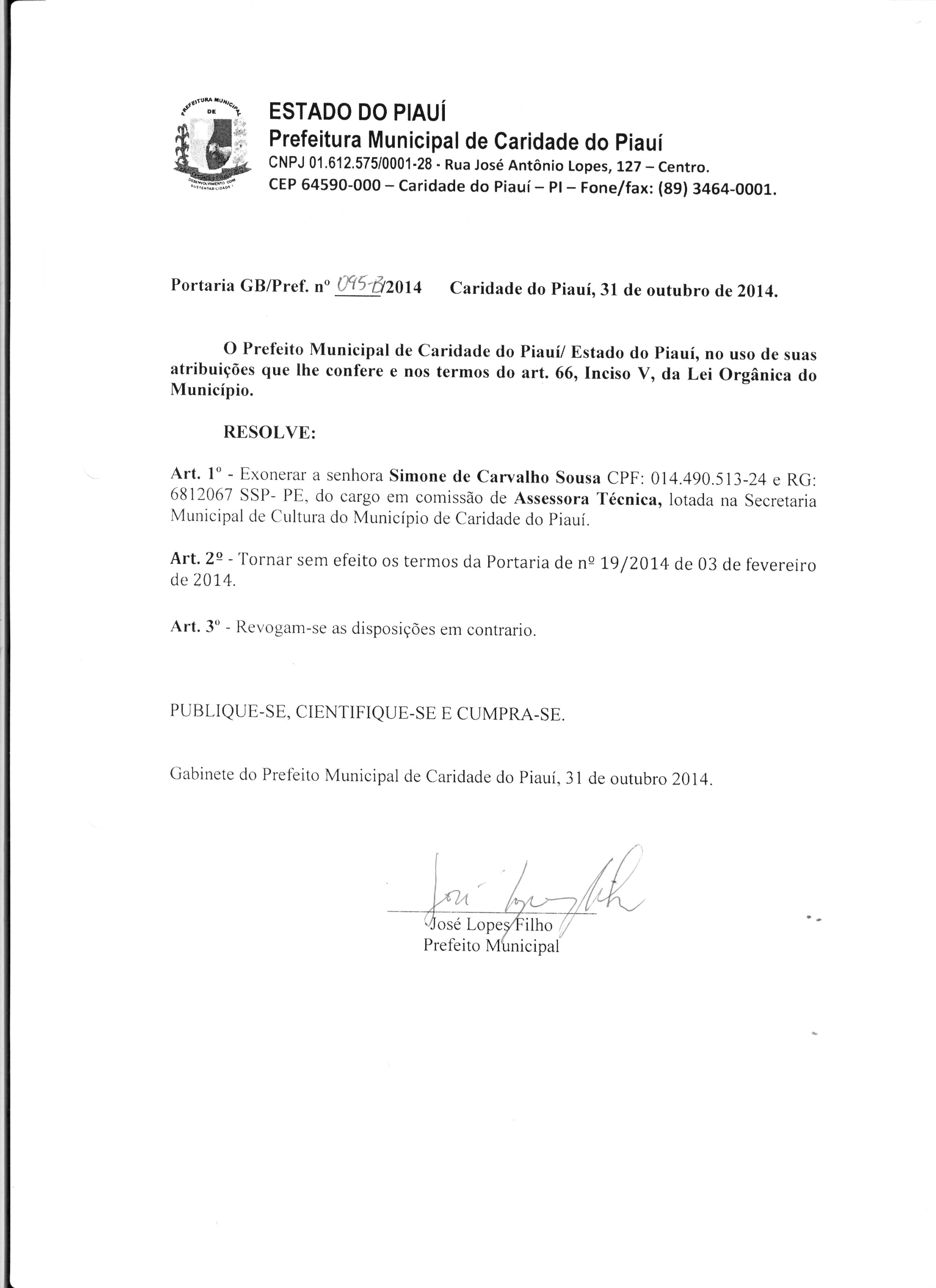 Lei publicada PORTARIA Nº 095B/2014PORTARIA |