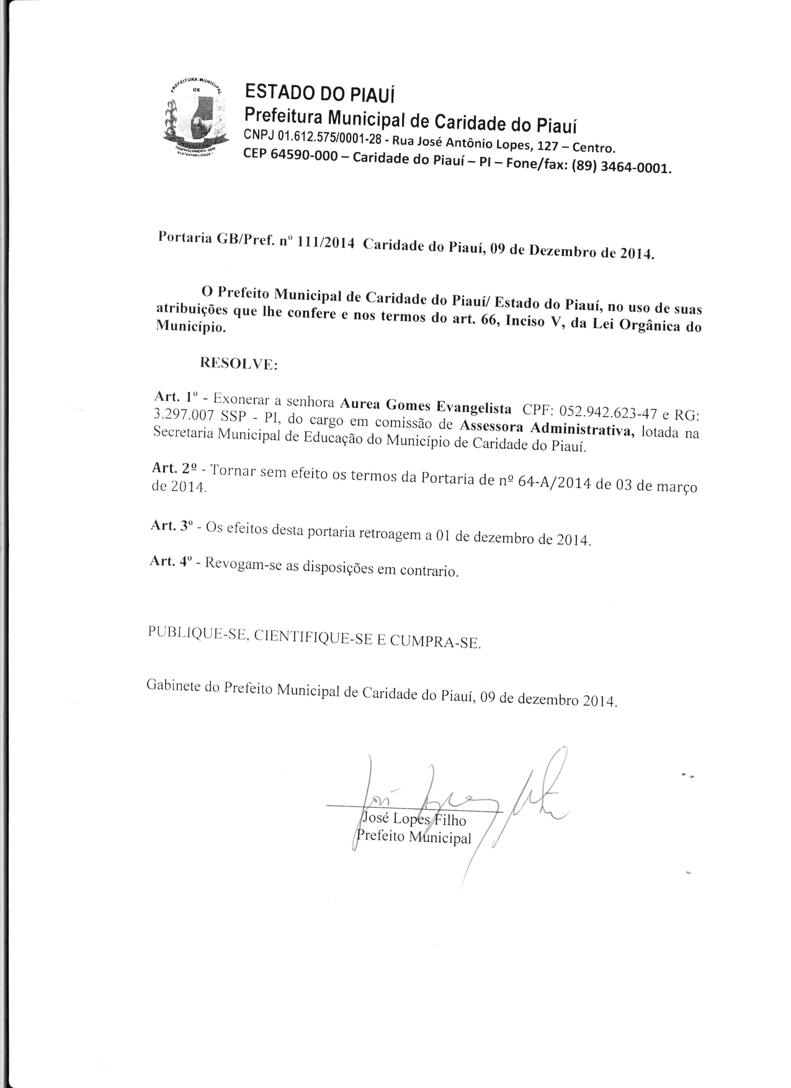 Lei publicada PORTARIA Nº 111/2014PORTARIA |