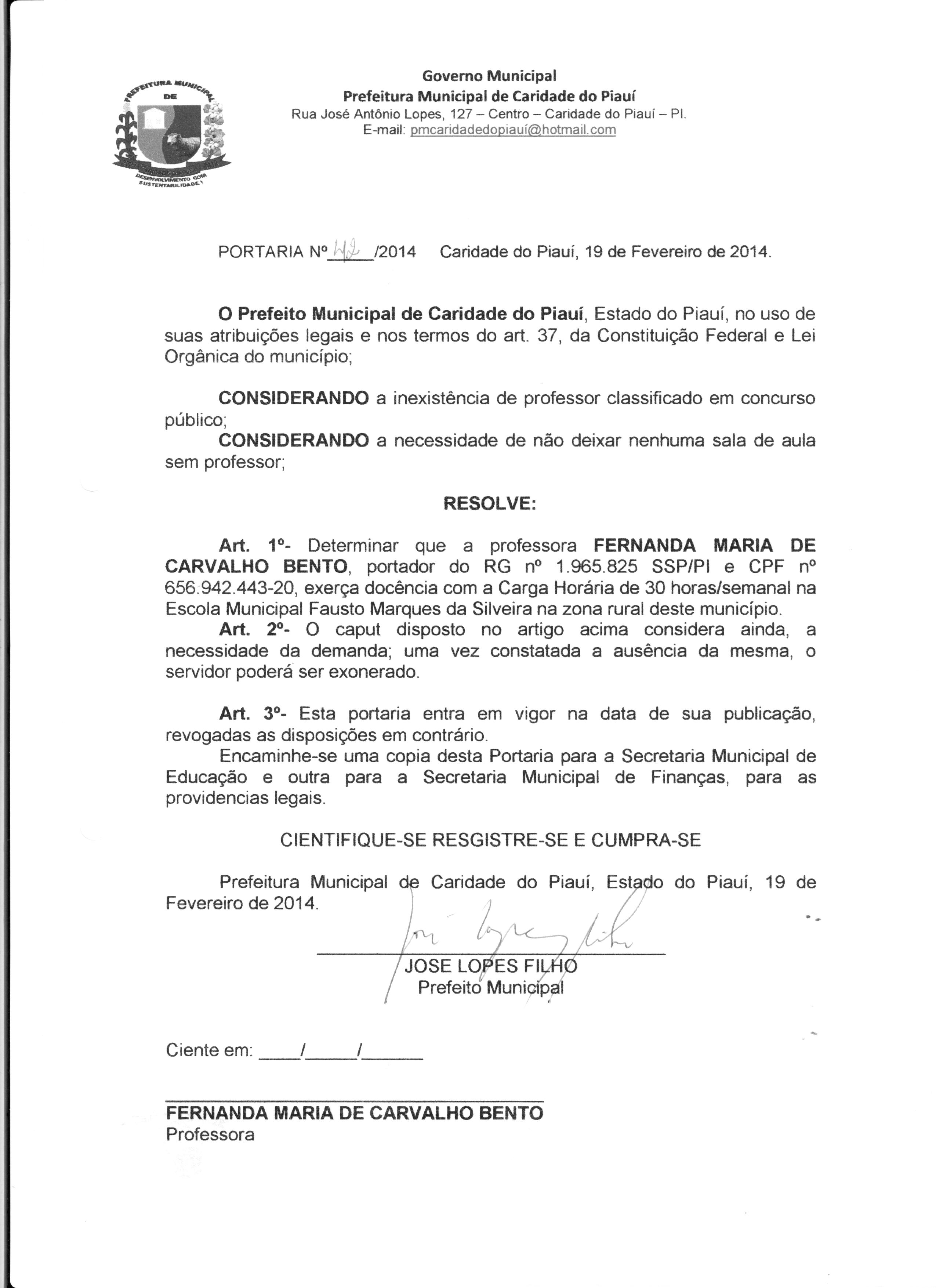 Lei publicada PORTARIA Nº 40/2014PORTARIA |
