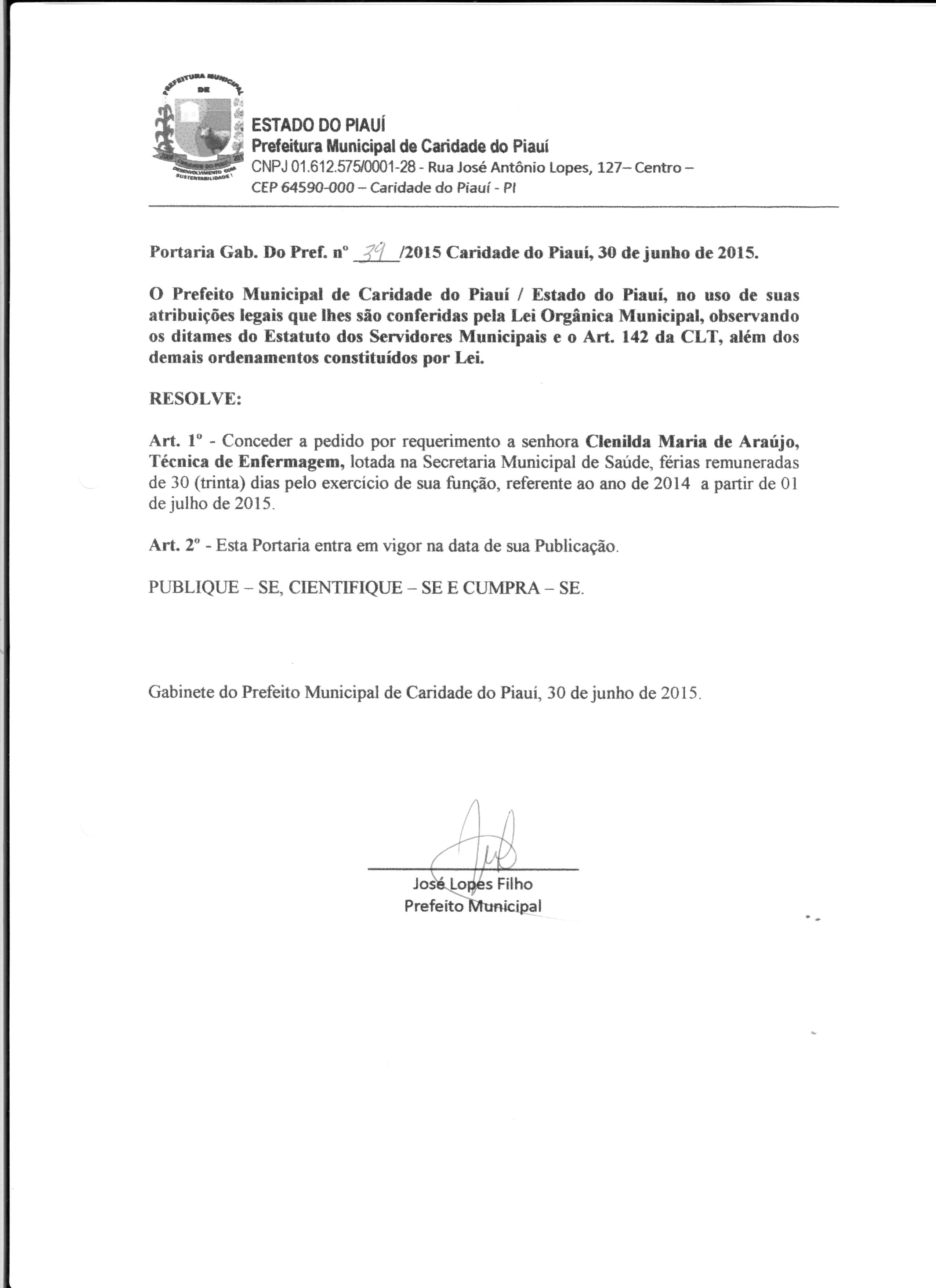 Lei publicada PORTARIA Nº 39/2015PORTARIA |