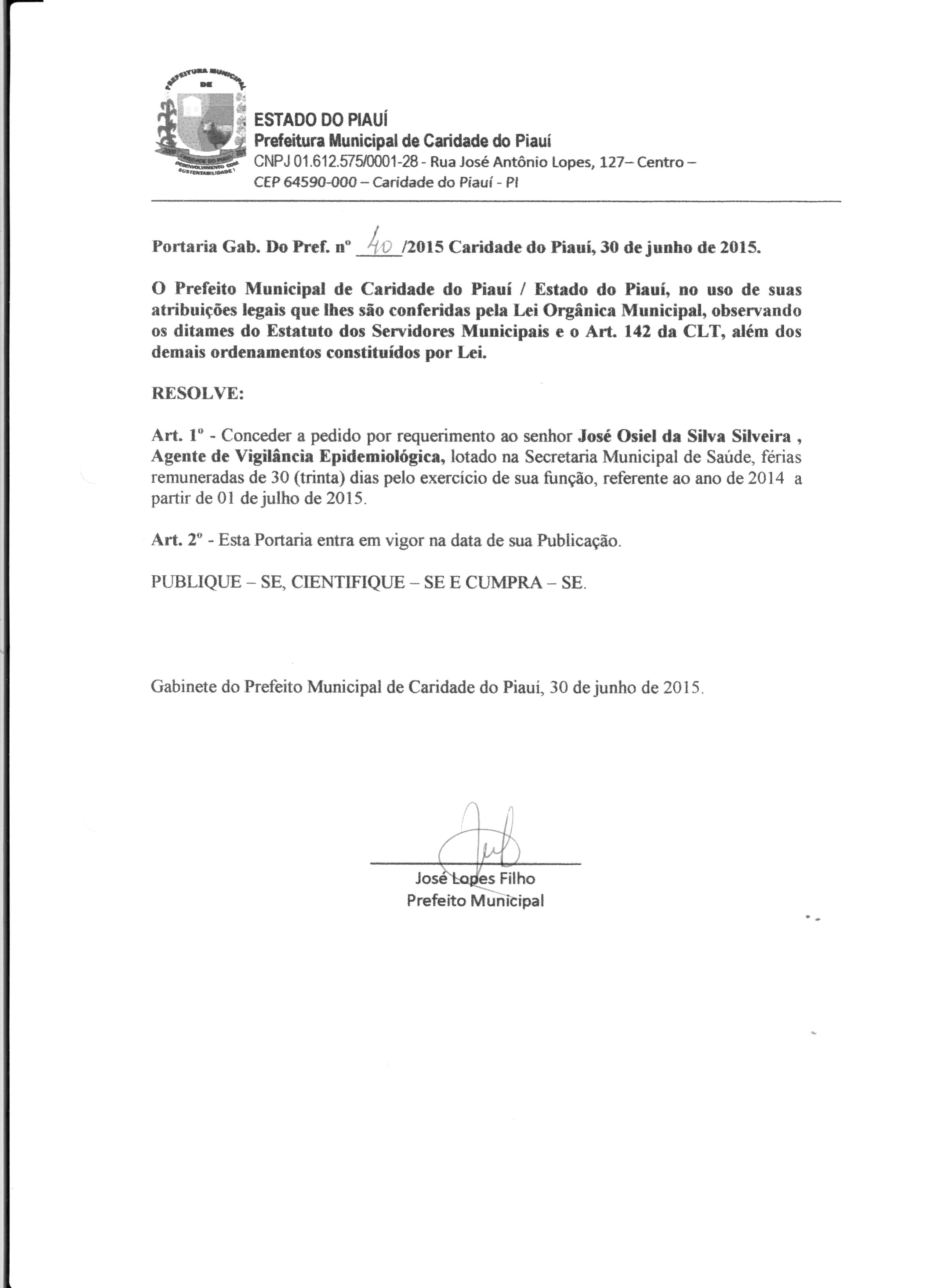Lei publicada PORTARIA Nº 40C/2015PORTARIA |