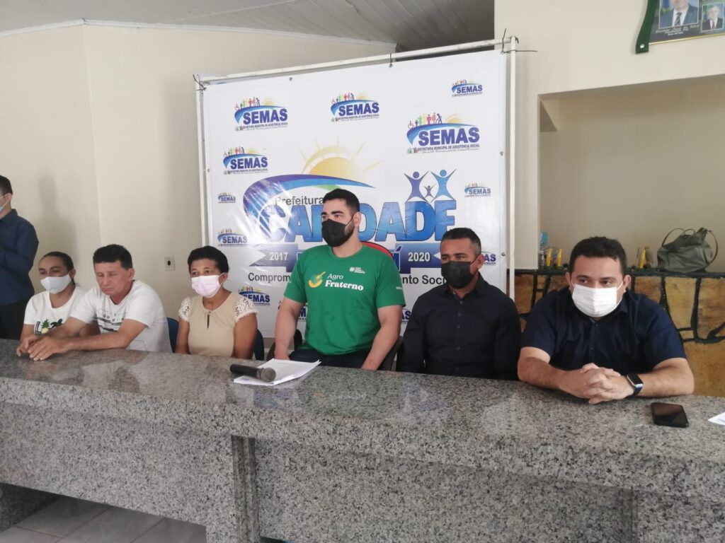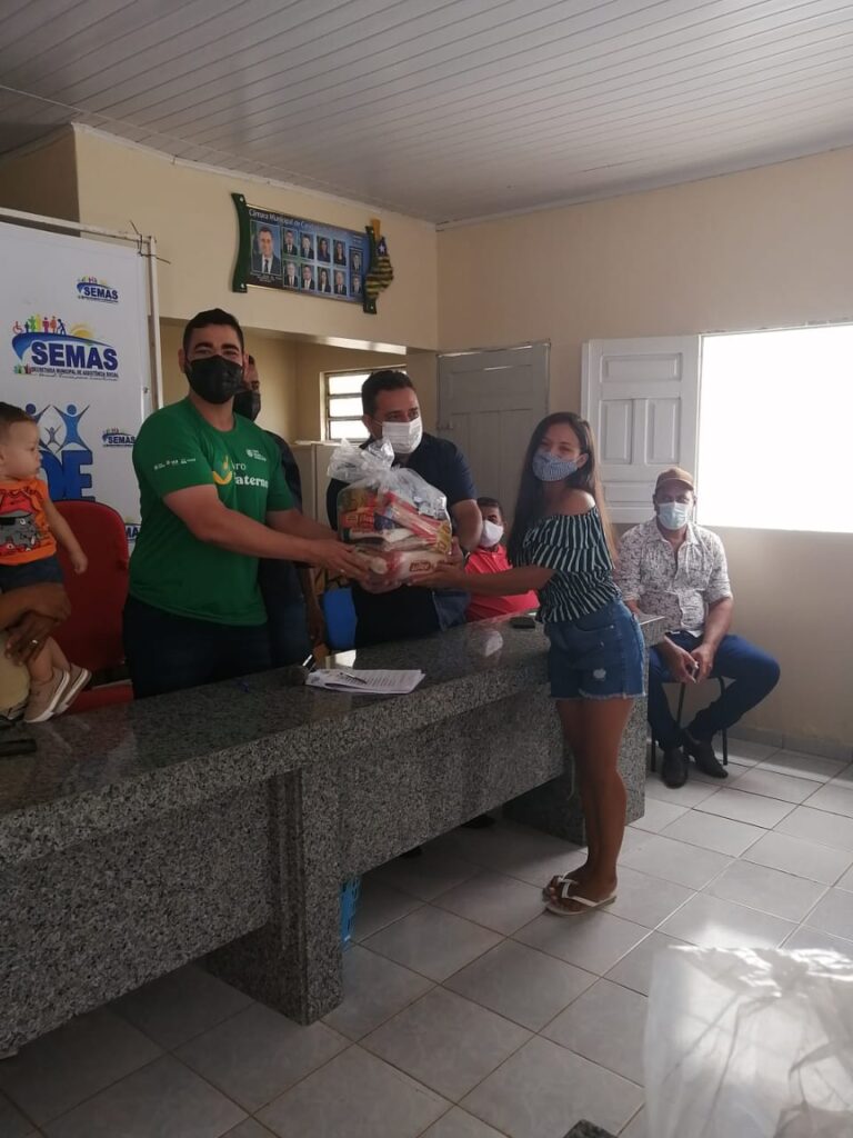 Na manhã do último sábado (18), foi realizada a solenidade de entrega das cestas de alimentos. O evento aconteceu na Câmara Municipal, contando com a presença do prefeito Toninho, do vice-prefeito Miguel Sousa da Silva, o Nalvim, secretários Leocádio Alves, de de Assistência Social e Leandro Paiva, de Administração, vereadora Maria da Silva, Bilu, Nelson Estevão, Talison e Leonel Leal, do SENAR, Marciel Lopes, Cleineilda Xavier, assistente social, e Renato Luís, presidente do CMAS.