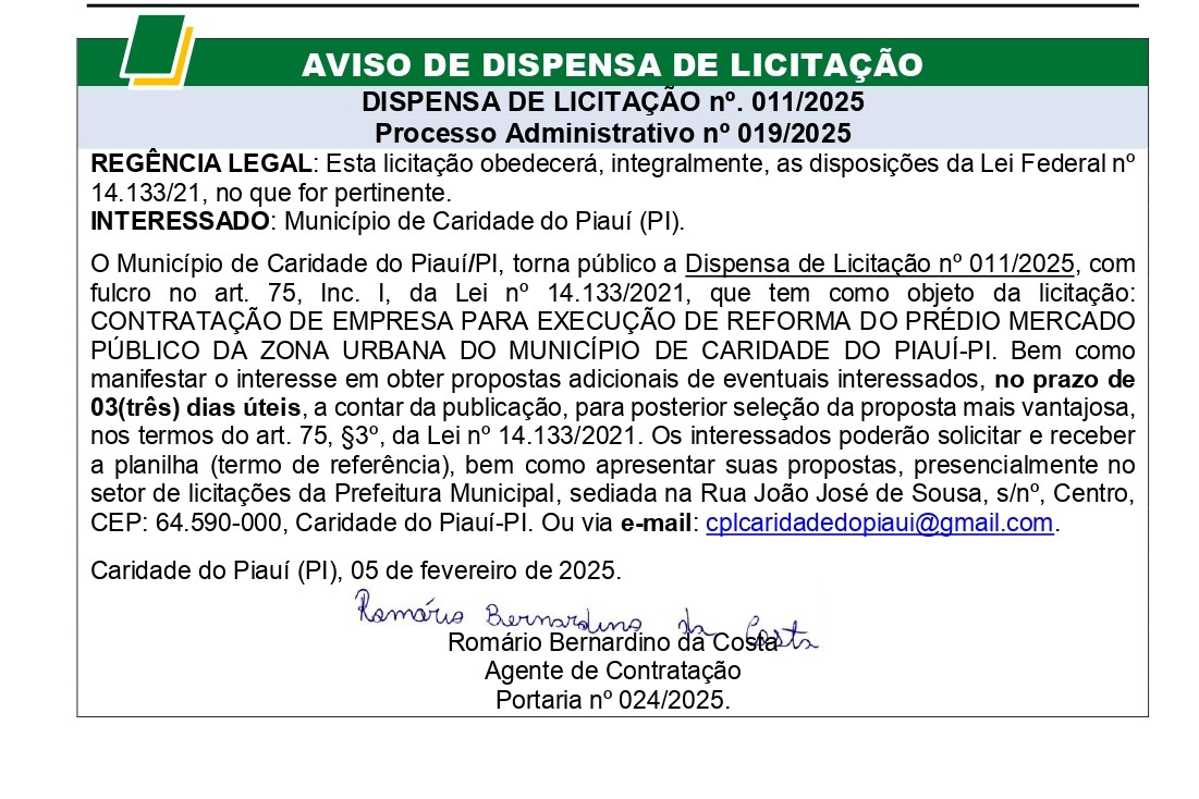 AVISO DE DISPENSA DE LICITAÇÃO N° 011/2025