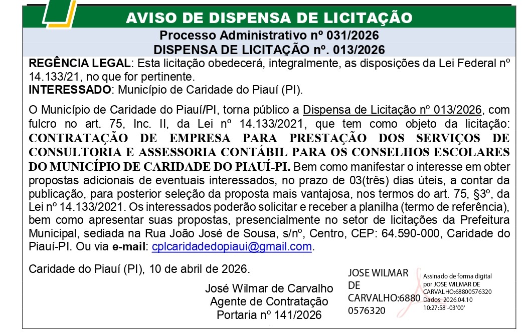 PREFEITURA MUNICIPAL DE CARIDADE DO PIAUÍ