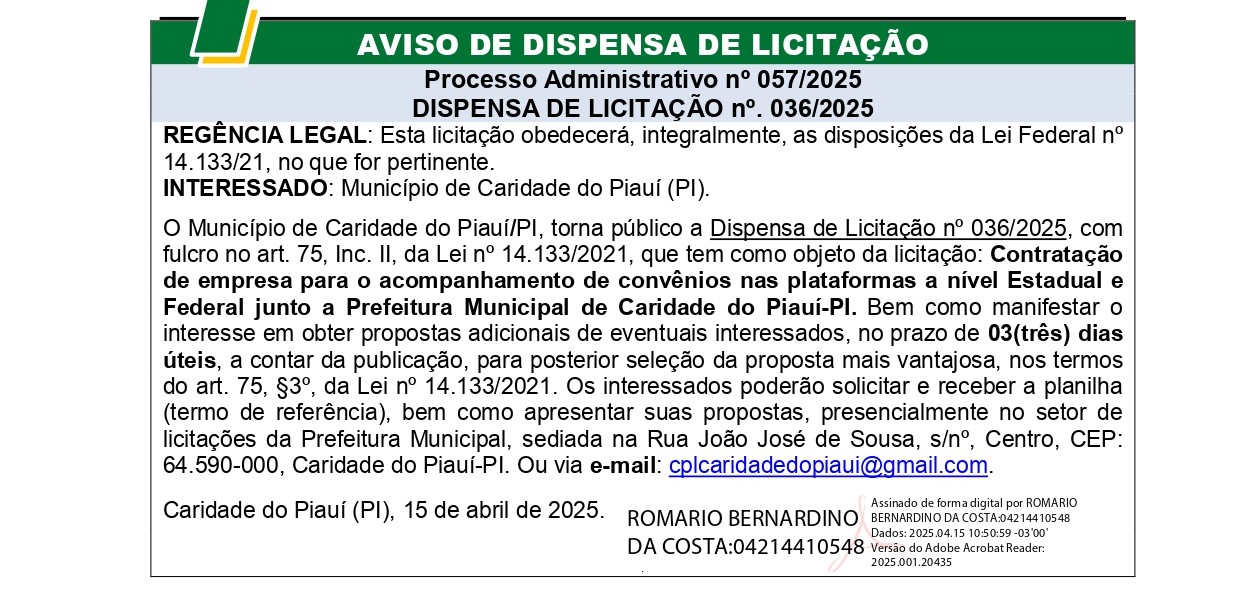 AVISO DE DISPENSA DE LICITAÇÃO Nº 036 /2025