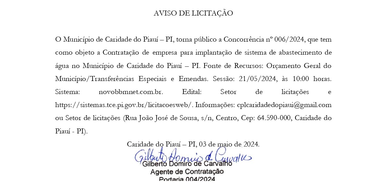 AVISO DE LICITAÇÃO CONCORRÊNCIA nº 006/2024