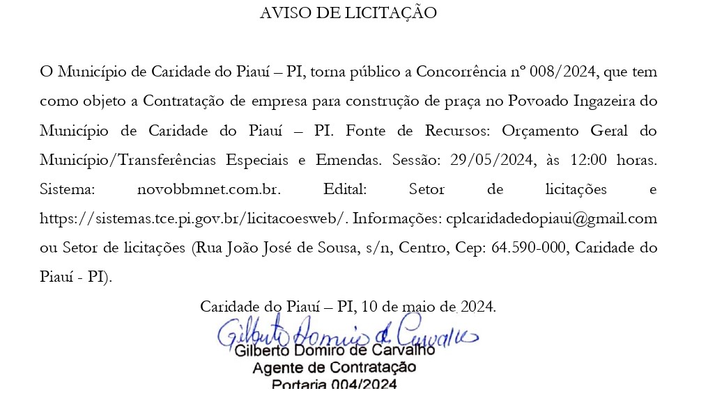 AVISO DE LICITAÇÃO CONCORRÊNCIA nº. 008/2024