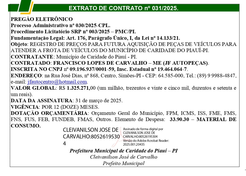 PREFEITURA MUNICIPAL DE CARIDADE DO PIAUÍ
