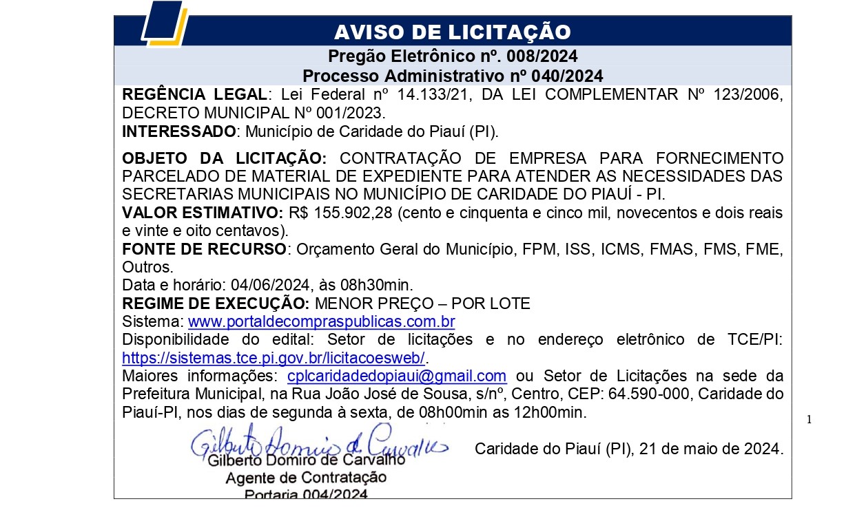 AVISO DE DISPENSA DE LICITAÇÃO Nº 012/2026